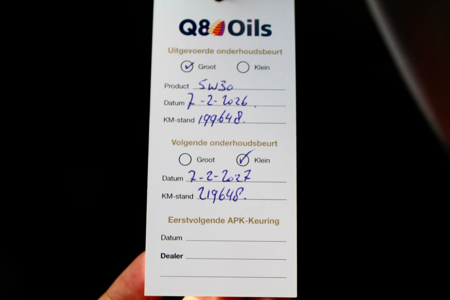 | APK | Bij aflevering |