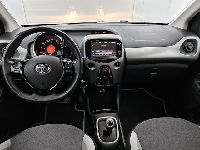 Een handige optie is de achteruitrijcamera. Achteruitrijden, inparkeren en manoeuvreren gaat gemakkelijker dan ooit. In deze Aygo vind jij schakelaars op het stuur om het audio-installatiesysteem te bedienen. Deze auto heeft airconditioning aan boord.