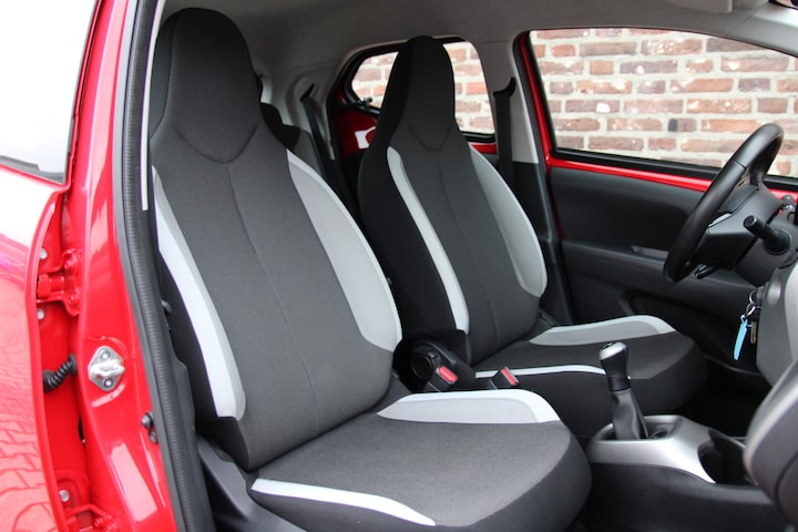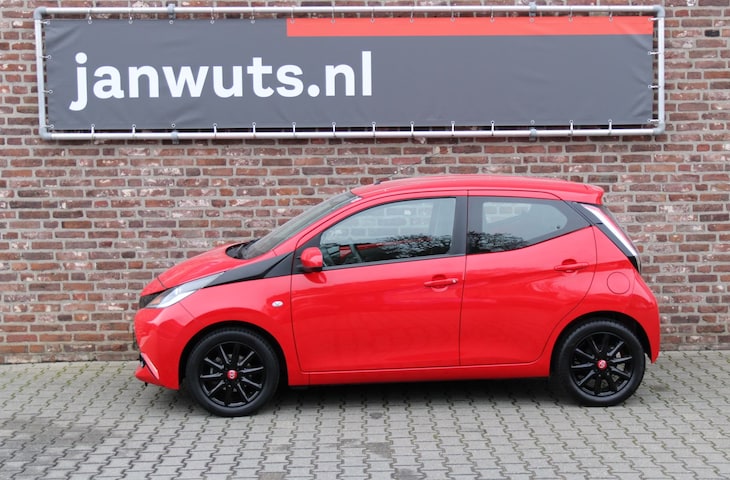 Keurig nette Aygo in de sportieve kleur: Fire Red met fraaie zwarte velgen.