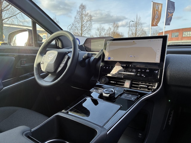 Toyota bZ4X Dynamic 71.4 kWh. Deze Nederlands geleverde, ruime Toyota is voorzien van o.a. Climate Control, Adaptive Cruise Control, Dodehoek detectie, 360° camera, Parkeersensoren, Apple CarPlay & Android Auto, Warmtepomp, Stoel-/stuurwiel- en voorruitverwarming etc.