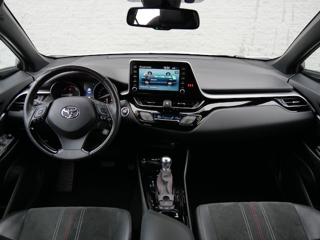 Zoals u van een sportuitvoering kunt verwachten heeft deze 'GR-Sport' de nodige sportieve extra's en looks. De C-HR staat op 19inch grote lichtmetalen velgen in two-tone design, de voorbumper heeft een hoogglans zwarte spoilerlip, de koplampenbehuizing is donker van kleur evenals de grille van de C-HR.