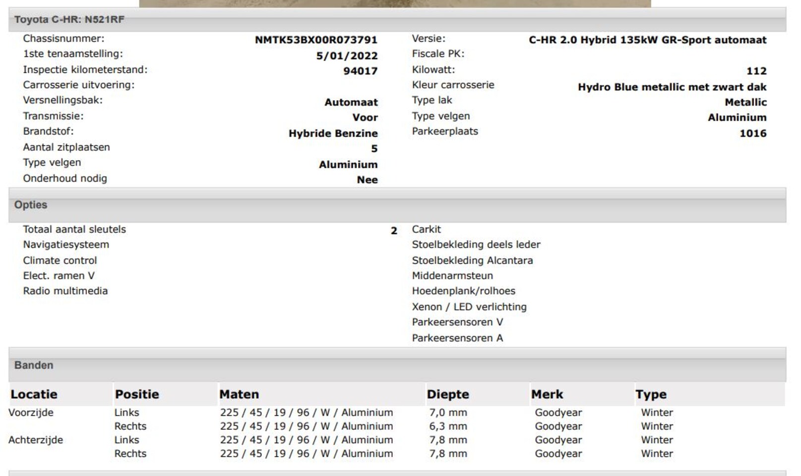 | Oorspronkelijke kleur | Blauw metallic |