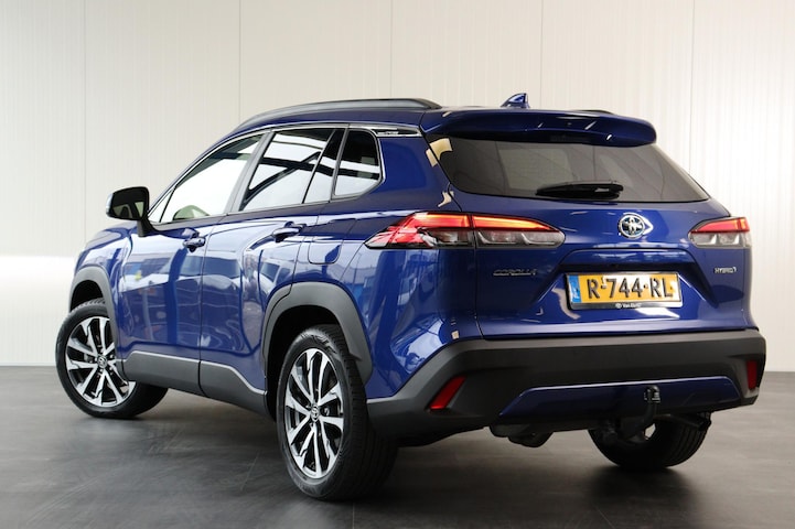 ..Corolla Cross 2.0 197 PK First Edition in de kleur Cobalt Blue metallic. Deze Cross is rijk uitgerust met o.a parkeersensoren voor en achter, half lederen bekleding, Blind spot monitor, 17 inch velgen met All Season banden. De Cross is uitgerust met een trekhaak en mag 750 KG trekken.