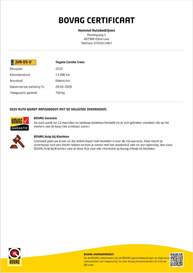 - BOVAG Garantie 12 maanden