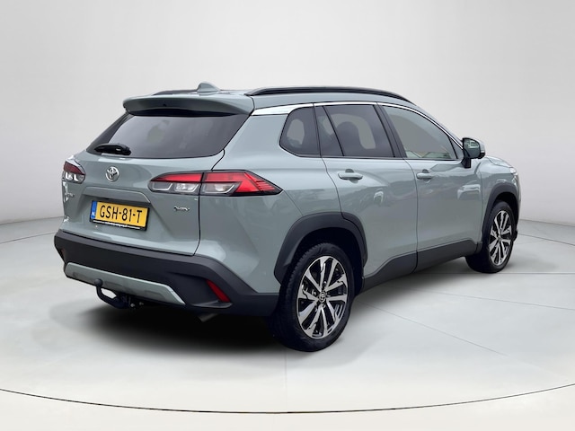 De top is eraf, alle systemen beproefd, de techniek up-to-date. Deze piepjonge Toyota Corolla Cross staat te popelen om er weer op uit te gaan! Uitstekende prestaties op de weg dankzij de verbrandingsmotor én elektromotor. En héél vriendelijk voor het milieu en portemonnee! Met het lederen interieur ervaart u direct het gevoel van luxe en comfort. Bestuurder en bijrijder krijgen een warm welkom: deze Toyota Corolla Cross is voorzien van verwarmbare voorstoelen. De elektrisch bedienbare achterklep opent met een druk op de knop. Zo'n verwarmd stuurwiel is een comfortabele extra, zeker in de winter. U wordt in deze auto ook getrakteerd op LED koplampen, extra getint glas, in delen neerklapbare achterbank, LED-achterlichten en verstelbare lendensteunen.