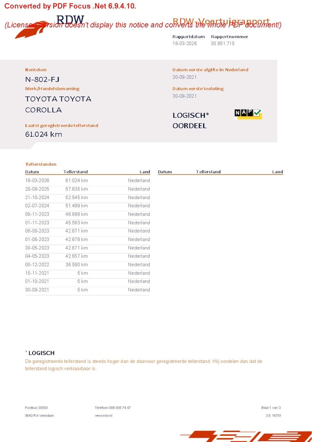 | Kilometerstand | 61.024 km |