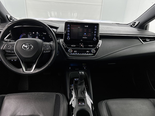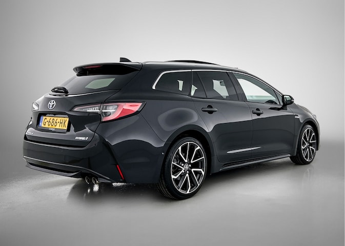 De Toyota Corolla Touring Sports is een goed voorbeeld van Japanse bouwkwaliteit. De combinatie van een verbrandingsmotor en een elektromotor zorgt voor prima rij-eigenschappen en een laag brandstofverbruik. Dat noemen ze nou een ruimtelijk effect: het elektrisch bediende glazen panorama dak, dat net zo gemakkelijk open en dicht gaat als de elektrisch bedienbare achterklep. En ondertussen het ware luxegevoel van het lederen interieur. Stoelverwarming maakt het leven in deze auto aangenaam op koude en winterse dagen. Ook achterin heerst een luxe sfeer, vanwege de verwarmde achterbank. De slimme koplampen gebruiken de allernieuwste matrix LED-verlichting. Altijd maximaal zicht, nooit verblinding bij de tegenligger. Bij de uitrusting van deze auto horen onder meer 18 inch lichtmetalen velgen, donker getint glas achter, in delen neerklapbare achterbank, LED-achterlichten en verstelbare lendensteunen.