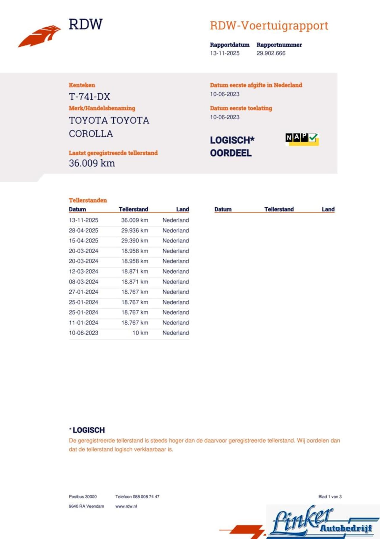 | Kilometerstand | 36.009 km |