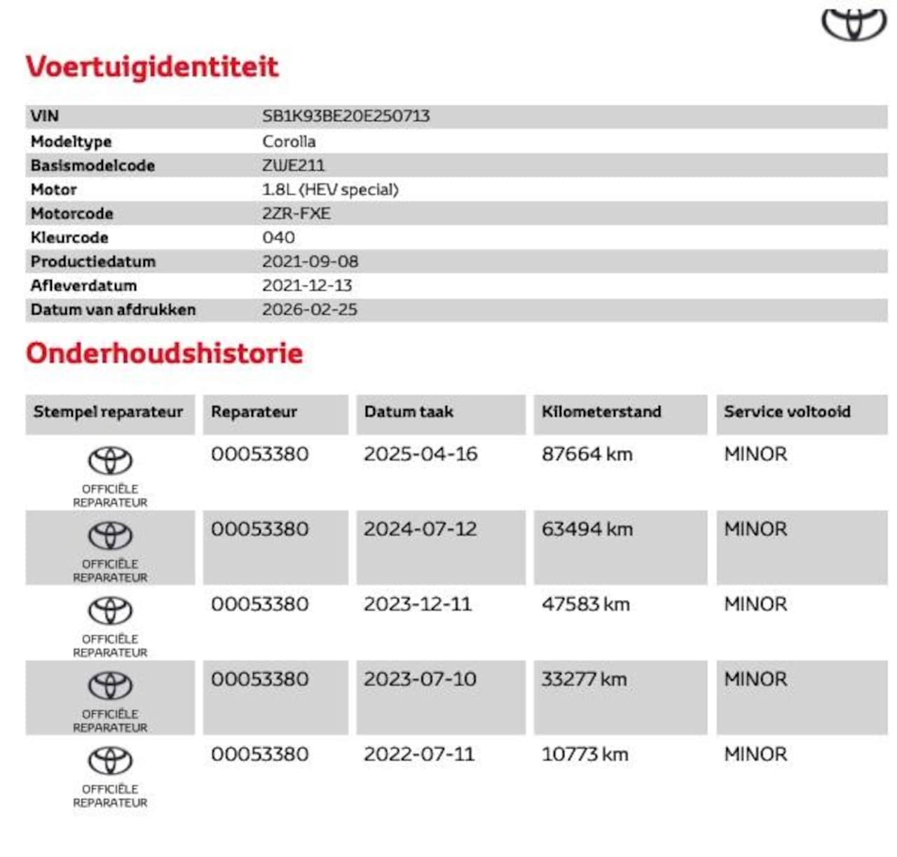 | APK | Bij aflevering |