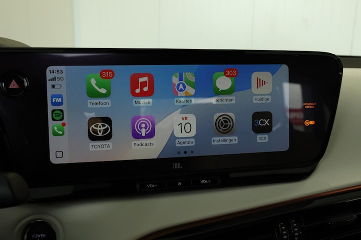 Binnen in de Mirai is het een en al luxe. Het interieur is prachtig afgewerkt met alle oog voor detail. Natuurlijk is deze Mirai voorzien van een 360graden parkeercamera, digitale achteruitkijkspiegel, JBL audio met 14 speakers, het nieuwste 12,3" Toyota navigatie met draadloze Apple Carplay en Android Auto, Adaptieve Cruise Control, Panoramadak, Head Up display van maar liefst 10", Elektrisch bedienbare voorstoelen met geheugen functie voor de bestuurder, stoel verwarming en koeling voor de voorstoelen maar ook op de achterbank heb je verwarming én koeling die je kunt bedienen vanaf de armsteun, waar je ook de radio en de airconditioning mee kan regelen.