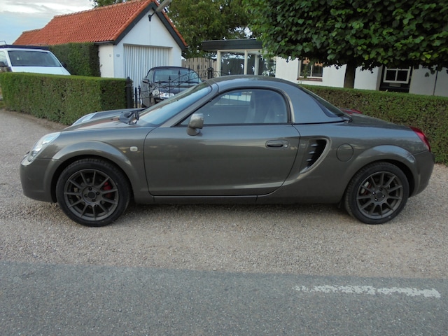 Mooie Toyota MR2+ 1.8-16V VVT-i Speed Shift. Recente import uit Belgie, gekocht bij Toyota-dealer Holvoet. In zeer goede en gezonde staat verkerend, rijdt subliem. Deze MR 2 heeft een lichte tuning ondergaan, je voelt duidelijk dat er wat meer PK"s en newtonmeters wakker zijn! Is met zijn lage eigen gewicht van slechts 1025 kg. en een geschat vermogen van 165 PK lekker snel. Het schakelen van de half-automaat met 6 versnellingen kan met de pook of met drukknoppen aan het stuur, het schakelen gaat zeer soepel en snel. De wegligging is subliem door de perfecte gewichtsverdeling, echt een genot om mee onderweg te zijn!! Voorzien van Lederen bekleding, Traction Control, ABS-remsysteem, Limited Slip Differentiel, Brake Assist, Alarm af fabriek, 16" Lichtmetalen velgen met nieuwe banden, Hardtop en softtop met windscherm, etc. Een mooie en heldere MR 2 zonder gebreken en zonder schadeverleden, een eventuele aankoopkeuring is dan ook zeker toegestaan! Wordt geleverd met een Nederlands kenteken, nieuwe APK en een ouderwets grote beurt. De prijs voor al dit moois is EUR 9950,= RIJKLAAR, dus zonder bijkomende kosten!! Keertje kijken en een fijne proefrit maken kan op afspraak, bel met 06-21245527 en we prikken een datum! Met vriendelijke groet, Leen de Jong.