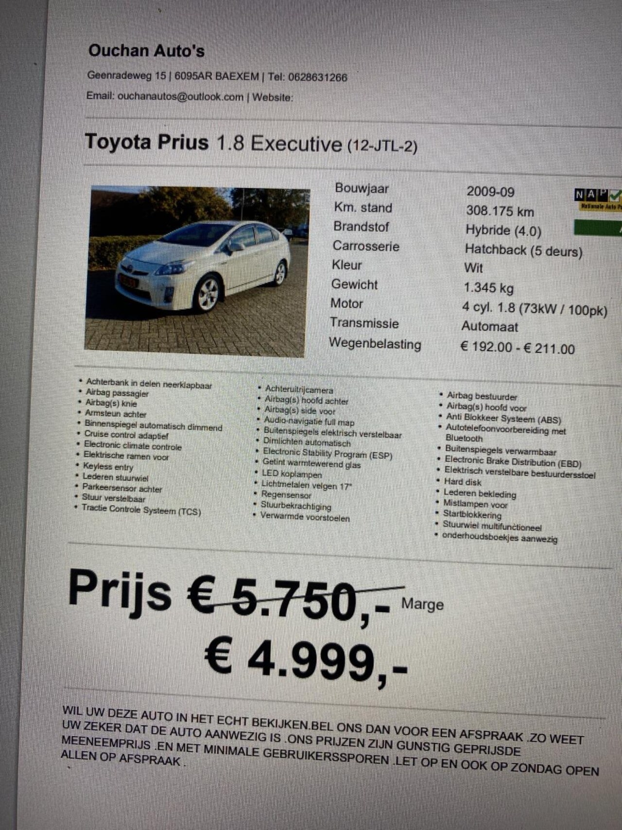 2009, Hybride, Automaat, Hatchback, Wit