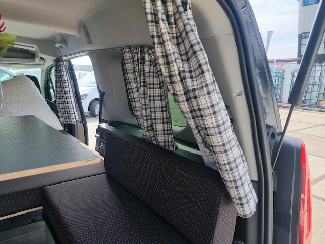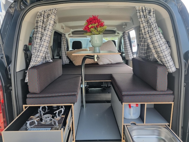 Het bed is eenvoudig op te klappen zodat de achterbank weer kan worden gebruikt. Ook is de gehele box te verwijderen wanneer er niet gekampeerd wordt.
