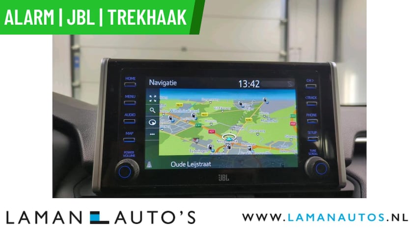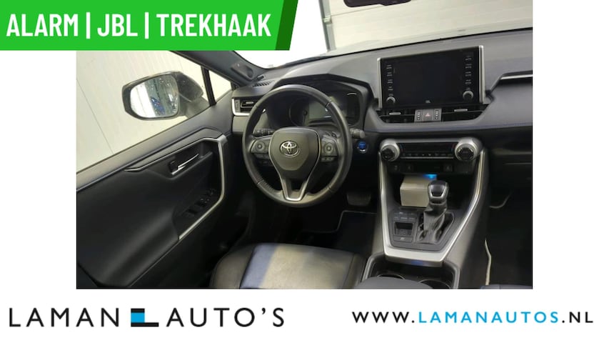 Deze RAV4 hybrid is voorzien van de sterke en zuinige 218pk hybride motor en ook nog eens uitgerust met luxe opties zoals een heerlijke automaat, Defa DVS 90 alarm klasse 3, JBL Premium Sound, Apple CarPlay, Android Auto, halflederen bekleding, stoelverwarming, Bi-Tone metallic lak, LED verlichting, navigatie, climate control, 18" lichtmetalen velgen, adaptive cruise control, achteruitrijcamera, elektrisch bedienbare achterklep, parkeersensoren voor en achter etc.