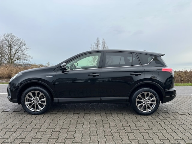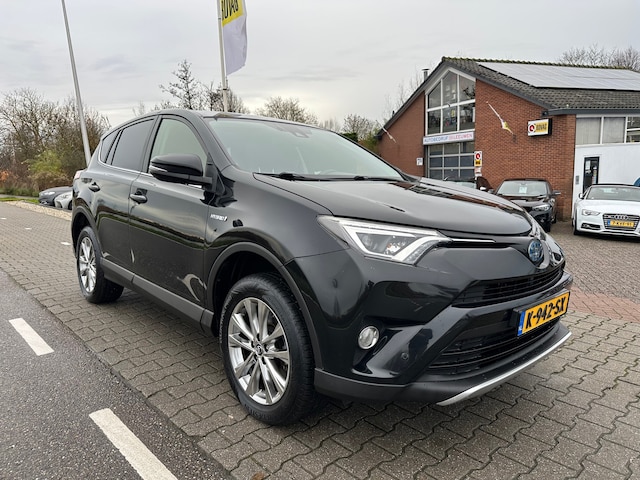 Toyota Rav4 Hybrid voorzien van een trekhaak, achteruitrijcamera, parkeersensoren, navigatie, cruisecontrol en stoelverwarming.