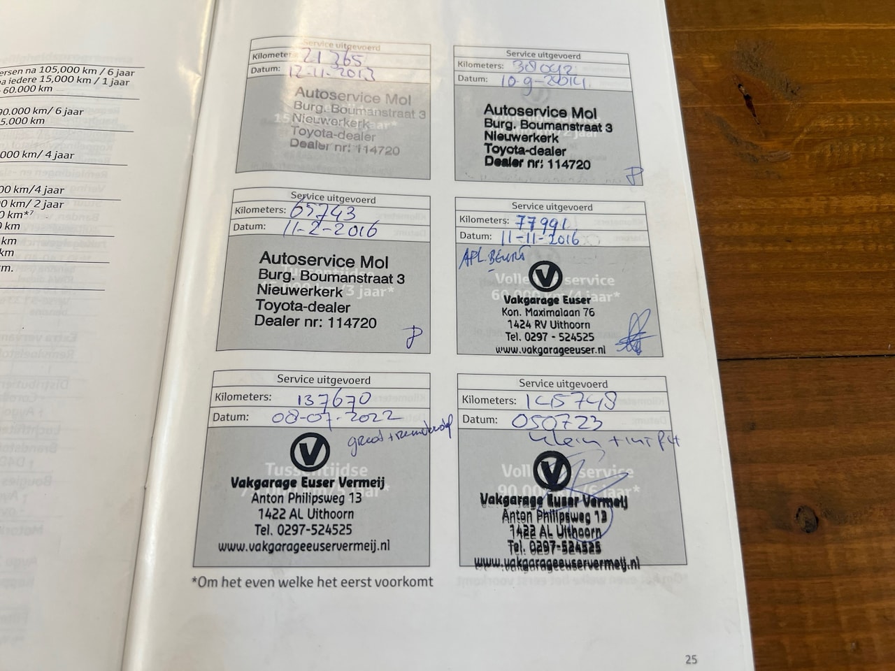 | APK | Bij aflevering |