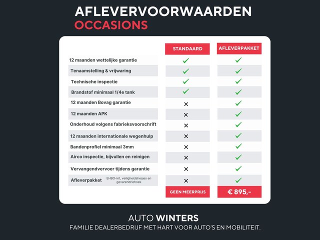 Verkoopprijs € 8.720,- incl. Basis Service-pakket. Rijklaarprijs € 9.615,- incl. FullService-afleverpakket van € 895,-.