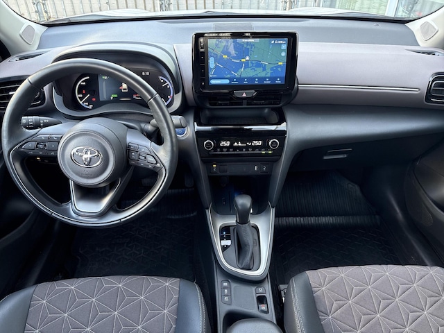 Deze auto is voorzien van een digitaal dashboard waarmee u de cockpit-interface kunt personaliseren. De achteruitrijcamera laat duidelijk zien hoeveel ruimte u nog heeft bij het inparkeren. Als u de adaptive cruise control inschakelt, regelt de auto zelf de snelheid en de afstand tot de auto voor u. Deze Toyota Yaris Cross is 'connected'. Belangrijke functies worden permanent gemeten en zijn uit te lezen via een speciale app, ook op afstand. Gedoe met kabels en stekkers in de sigarettenaansteker is voorbij. De aanwezige draadloze oplaadmogelijkheid voor telefoons zorgt voor wireless recharging van uw smartphone. Met electronic climate control, DAB ontvangst, regensensor, keyless entry, buitentemperatuurmeter en automatisch dimmende binnenspiegel is deze auto helemaal compleet.