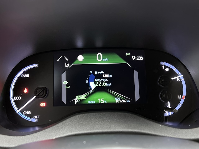 De indeling van het digitale dashboard is zo ingericht dat je met één blik precies weet wat je weten wilt. Met de achteruitrijcamera zie jij precies wat er achter de auto gebeurt. Adaptive cruise control is een comfortabele en veilige optie. Het systeem reguleert de snelheid en houdt automatisch afstand tot jouw voorligger. Hoe is het met de banden, de accu en andere onderdelen? Connected Services maakt het inzichtelijk, 24/7 via de app. Je kunt je handen aan het stuur houden en je ogen op de weg. Want het audio-installatiesysteem, met DAB-ontvangst, en het full map navigatiesysteem bedien jij vanaf het stuurwiel. De uitrusting van deze Toyota is met automatische airconditioning, regensensor, keyless entry, buitentemperatuurmeter, automatisch dimmende binnenspiegel en lederen stuur behoorlijk compleet.