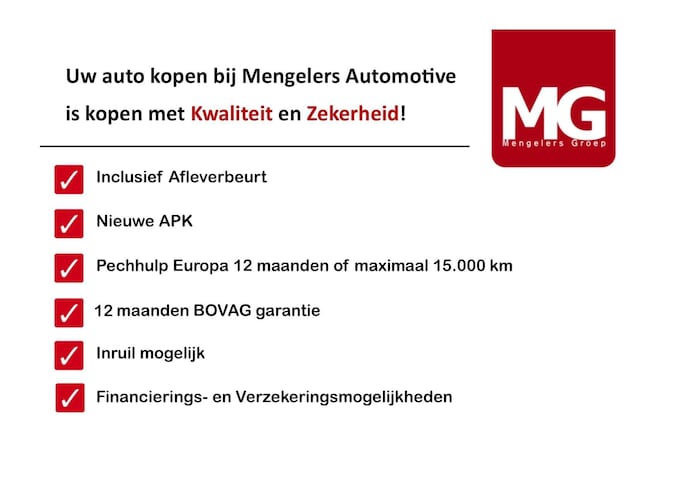 Inbegrepen afleverpakket: BOVAG 12 maanden : Inclusief afleverbeurt, nieuwe APK, Pechhulp Europa, poetsbeurt en 12 maanden BOVAG garantie