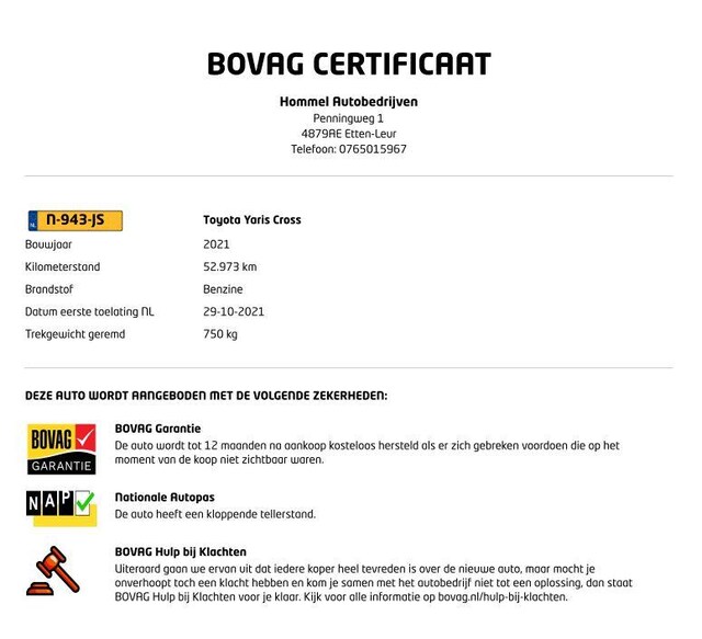BOVAG Afleverbeurt: Ja