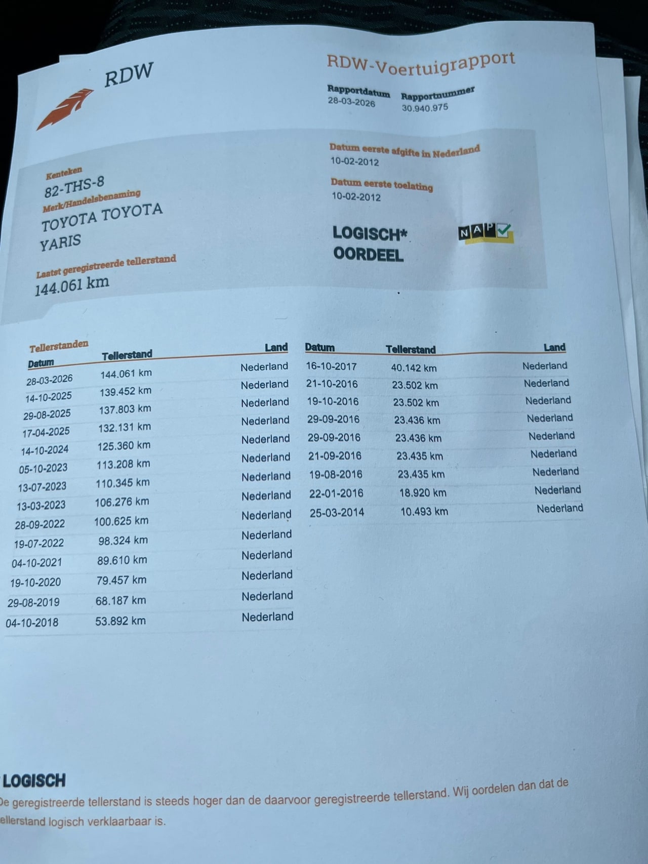 | Kilometerstand | 144.063 km |