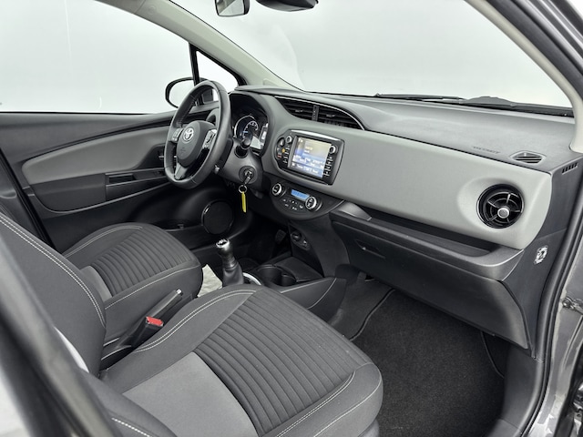 Zoals je mag verwachten van deze Toyota Yaris is hij uitgerust met een reeks aan actieve veiligheidssystemen. Bij de veiligheidssystemen van deze Toyota hoort ook de verkeersbord-detectie. Die leest tijdens het rijden als het ware met je mee en attendeert je op de significante verkeersborden langs en boven de weg. Het Lane-keeping systeem zorgt voor een automatisch constante positie binnen de rijstrook. Afdwalen is uitgesloten. Het forward collision warning-systeem berekent via een sensor de afstand tot het verkeer vóór u en komt in actie als er gevaar bestaat van een botsing. Dankzij veiligheidsvoorzieningen als hill hold functie, brake assist en bandenspanningcontrolesysteem, ben je steeds veilig onderweg.