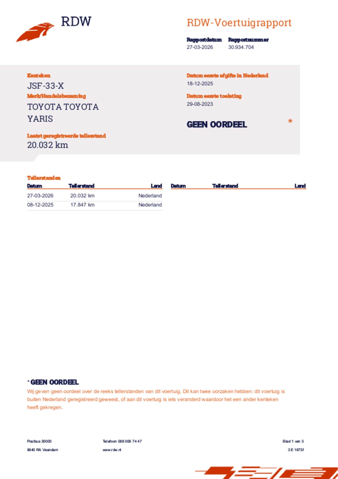 | Kenteken | JSF-33-X |