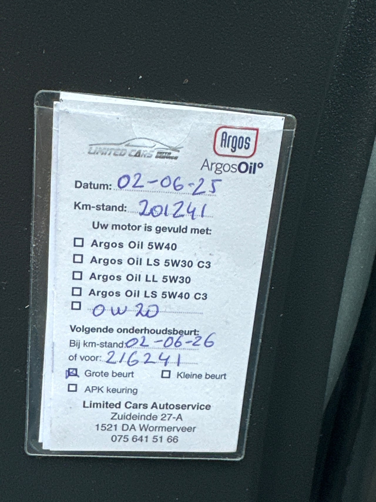 | APK | Bij aflevering |