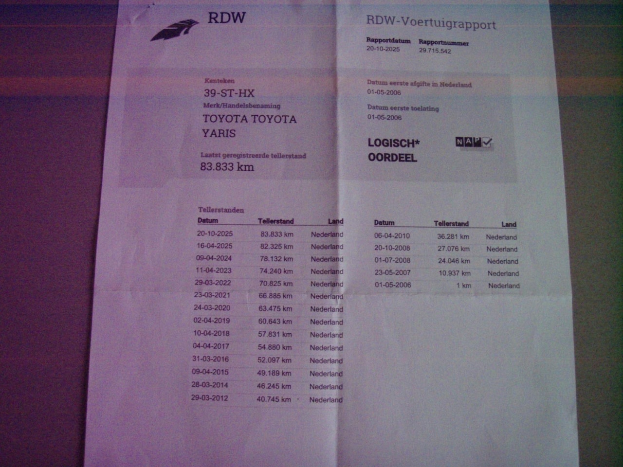 | Kilometerstand | 83.934 km |