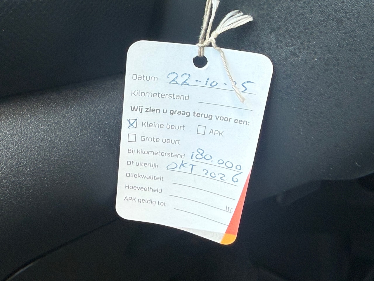 | APK | Bij aflevering |