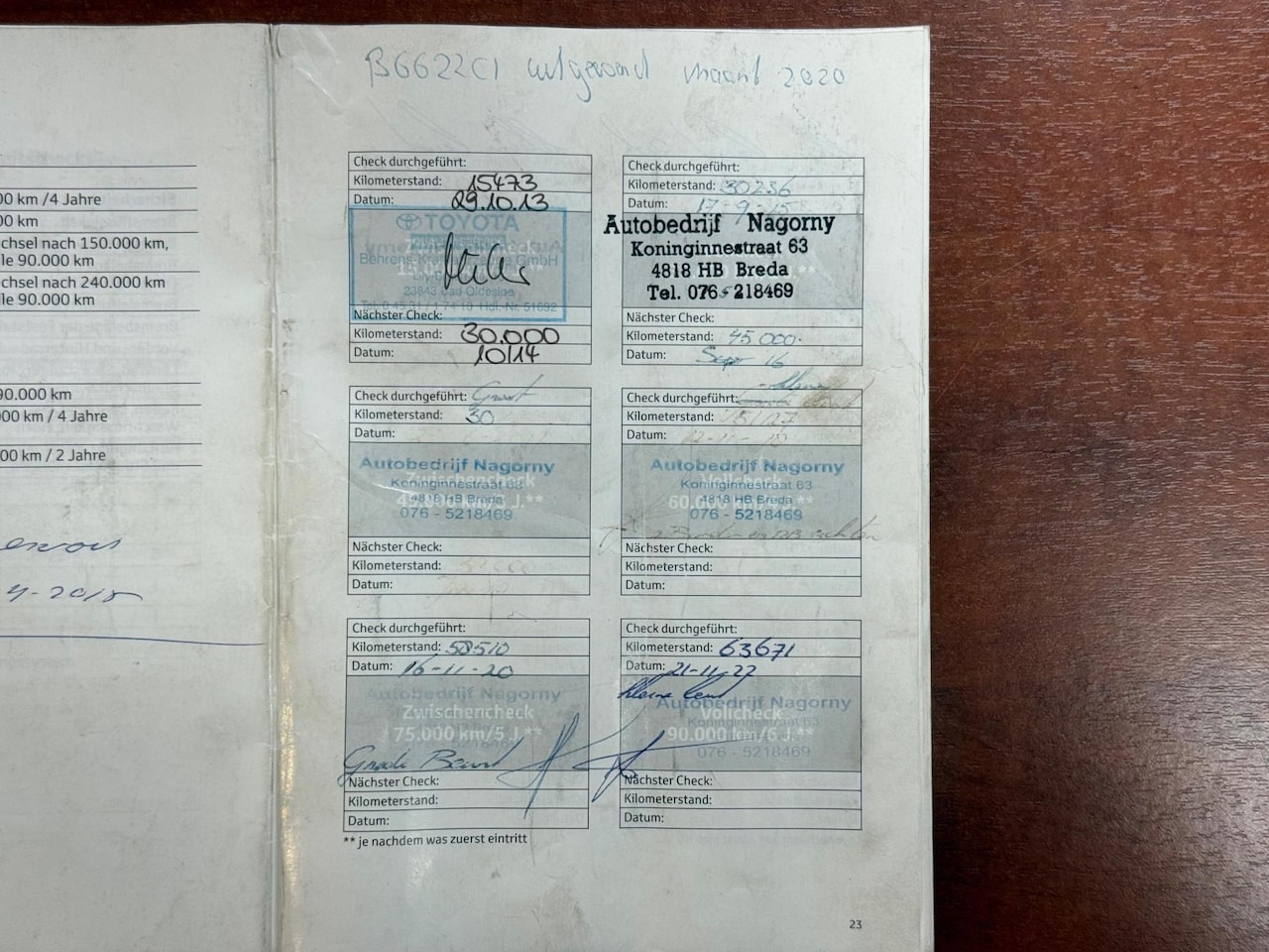 | APK | Bij aflevering |