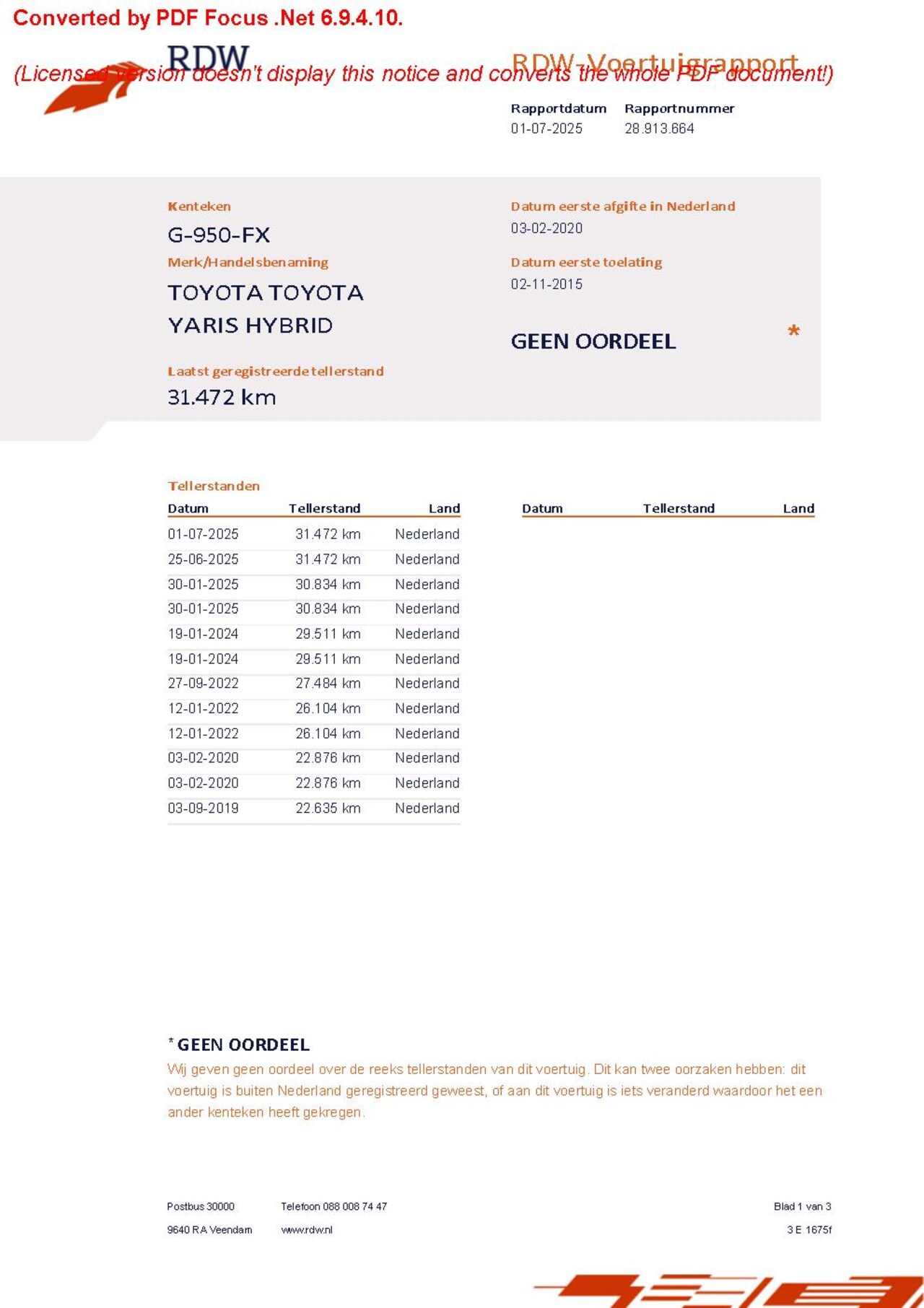 Bij aflevering