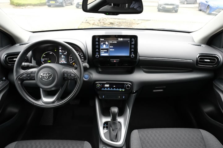 TOYOTA YARIS 1.5 Hybrid 115 Dynamic Automaat | Apple CarPlay® & Android Auto | Achteruitrijcamera | 4,2” digitaal instrumentenpaneel ‘Binocular’ | Ramen, elektrisch bedienbaar voor en achter | Smart Entry met startknop | 16” lichtmetalen velgen machined design 'Dynamic' | Grille voor, zwart pianolak | LED dagrijverlichting | LED knipperverlichting voor en achter | LED koplampen voor | LED mistlampen voor | 4 speakers | Achteruitrijcamera | Apple CarPlay® & Android Auto™ 1] | Radio, Bluetooth, USB aansluiting en DAB+ | Toyota Touch® 2 multimediasysteem met 7" touchscreen | USB-aansluiting voor | Afwerking middenconsole, deur- en stuurinleg zilver | Hoogteverstelling passagiersstoel | Lederen stuurwiel | Lederen versnellingspook | Sierlijsten interieur zilver | Stoelbekleding luxe stof zwart | Op Hybrid: Spoiler achter | Buitenspiegels, elektrische verstelbaar en verwarmbaar | Dagrijverlichting | Haaienvin antenne | Halogeen koplampen | LED achterlichten | Bandenreparatieset | Achterbank 60:40 neerklapbaar | Airconditioning (op Hybrid: Automatisch) | Armsteun voor (alleen op Hybrid) | Centrale vergrendeling met afstandsbediening | Deurbekleding 'stof' voor | Driespaaks urethaan stuurwiel met bedieningsknoppen | Elektrische handrem (alleen op Hybrid) | EV en ECO mode schakelaar (alleen op Hybrid) | Hoogteverstelling bestuurdersstoel | In hoogte en diepte verstelbaar stuurwiel | Interieurverlichting | ISOFIX kinderstoelbevestiging achter | Lichte hemelbekleding | Ramen, elektrisch bedienbaar voor | Richtingaanwijzers in buitenspiegels | Stoelbekleding stof zwart | 8 airbags waaronder center airbag voorste passagiers | ABS met brake assist | AVAS (Acoustic Vehicle Approach System) 0-25 km/h, niet uitschakelbaar (alleen op Hybrid) | AVS met EBD, VSC | Bandenspanningssensoren | Hill-start Assist Control (HAC) | Schemersensor | Toyota Safety Sense 2: - Automatic High Beam; automatische schakeling grooten dimlicht - Full Range Adaptive Cruise Control (Hybrid vanaf 0 km/h, benzine varianten vanaf 30 km/h) - Lane Departure Alert en Lane Trace Assist - Pre-Collision System met fietsers (dag) en voetgangers (dag+nacht) detectie - Road Sign Assist; verkeersbordenherkenning | 2 speakers | 4,2” kleuren instrumentenpaneel | DCM unit met e-call functie | Radiovoorbereiding | Tot 10 jaar garantie |