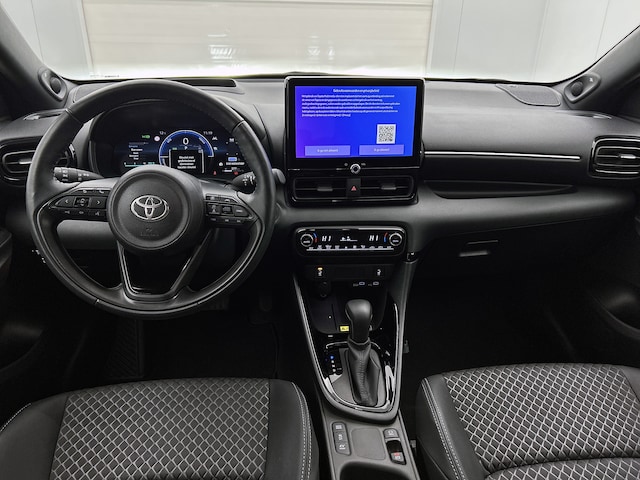 'Boem is ho'? Niet met deze achteruitrijcamera. U ziet achter net zo goed als voor en krijgt een duidelijk geluidssignaal! Adaptive cruise control is een comfortabele en veilige optie. Het systeem reguleert de snelheid en houdt automatisch afstand tot jouw voorligger. Hoe is het met de banden, de accu en andere onderdelen? Connected Services maakt het inzichtelijk, 24/7 via de app. De bediening van het audio-installatiesysteem en het navigatiesysteem gebeurt met knoppen op het stuur. De audio is overigens voorzien van DAB-radio voor een altijd heldere ontvangst. Zoals van een eigentijdse auto verwacht mag worden, is deze Toyota Yaris voorzien van een draadloze oplaadmogelijkheid voor telefoons. Deze Toyota is voorzien van electronic climate control, regensensor, keyless entry, buitentemperatuurmeter, automatisch dimmende binnenspiegel en lederen stuur.