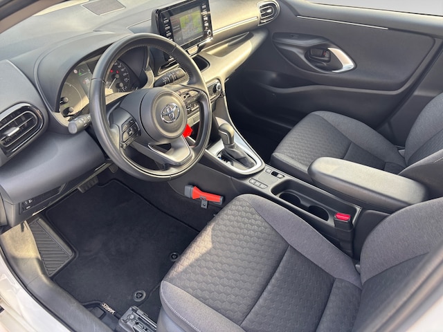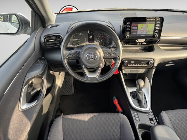 Altijd achter zicht, nooit meer nekkramp! De achteruitrijcamera maakt het supermakkelijk. Adaptive cruise control houdt de ingestelde snelheid vast en houdt automatisch afstand tot uw voorligger. Communiceren met uw auto? Dat gaat via remote services. Met uw smartphone maakt u waar dan ook contact om allerlei functies te checken of te activeren. In deze Yaris vindt u schakelaars op het stuur om het navigatiesysteem te bedienen en het audiosysteem met DAB-ontvangst. Bij de luxe van deze auto hoort ook automatische airconditioning. Ook regensensor, buitentemperatuurmeter, lederen stuur, isofix-aansluiting, centrale deurvergrendeling met afstandsbediening en boordcomputer zijn aan boord.