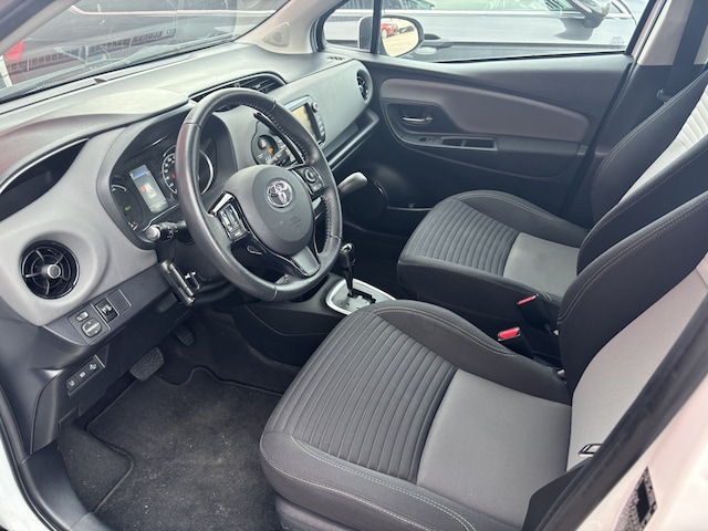 Parkeer en kijk niet om! De achteruitrijcamera doet dat voor u. Het audio-installatiesysteem en het in dashboard opgenomen navigatiesysteem bedient u veilig met knoppen op het stuur. De automatische airconditioning zorgt onder alle omstandigheden voor een prettige temperatuur. Deze Toyota Yaris is voorzien van een regensensor, zodat de ruitenwissers altijd de juiste snelheid hebben. De cruise control houdt de snelheid constant. Dat is relaxt reizen! En dan is deze auto ook nog eens voorzien van lederen stuur, isofix-aansluiting, centrale deurvergrendeling met afstandsbediening en lederen versnellingspook.