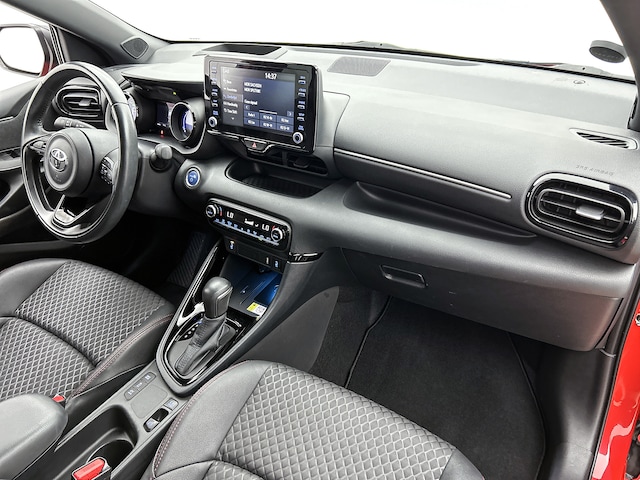 Bij het ontwerpen van de Toyota Yaris stonden jouw comfort en jouw veiligheid centraal. Deze Yaris is van het bouwjaar 2020, hij heeft 43947 kilometer gelopen. Een hybride auto zoals deze, wordt aangedreven door een verbrandingsmotor en een elektromotor. Daardoor is de auto zuinig en vriendelijk voor het milieu. Winter... Eerst krabben, dan genieten van de stoelverwarming. Bij de uitrusting van deze auto horen onder meer 17 inch lichtmetalen velgen, LED koplampen, halflederen bekleding, dakspoiler, donker getint glas achter en in delen neerklapbare achterbank.