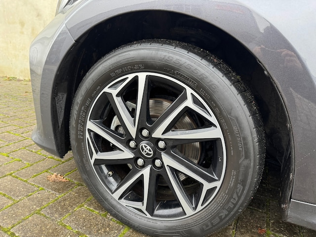 Deze auto is voorzien van een digitaal dashboard waarmee u de cockpit-interface kunt personaliseren. De hoogwaardige achteruitrijcamera en het display met hoge resolutie zorgen dat helemaal niets u meer ontgaat van wat er achter de auto gebeurt. Als u de adaptive cruise control inschakelt, regelt de auto zelf de snelheid en de afstand tot de auto voor u. Dankzij Connected Services weet u precies waar uw auto geparkeerd staat. Ook andere functies, zoals bandenspanning en brandstofniveau, zijn via de app altijd onder handbereik. In deze Yaris vindt u schakelaars op het stuur om het audiosysteem met dab-ontvangst te bedienen. Ook is de Toyota uitgerust met: automatische airconditioning, regensensor, keyless entry, buitentemperatuurmeter, lederen stuur en lederen versnellingspook.