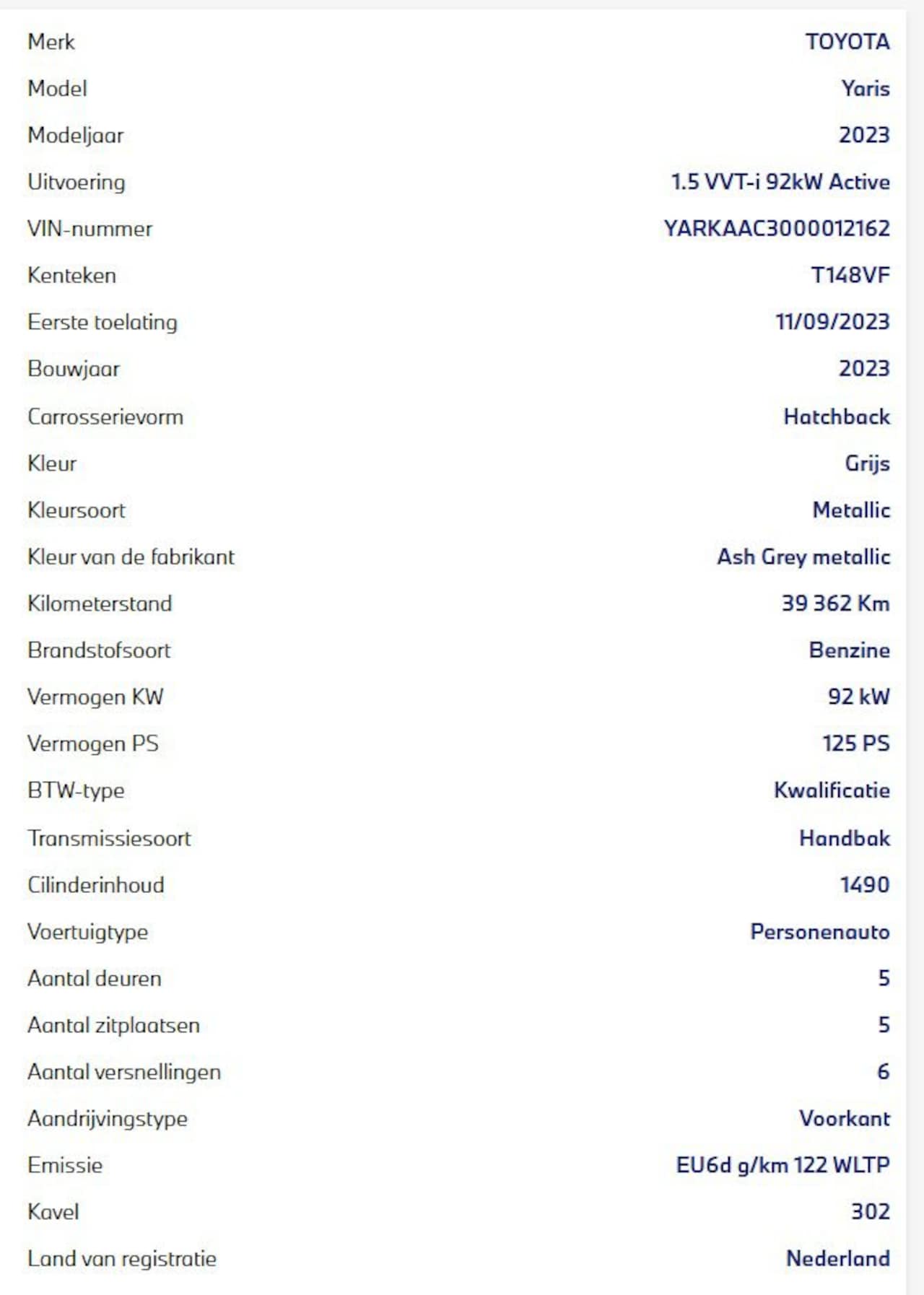 | BTW auto | Ja, incl. BTW |