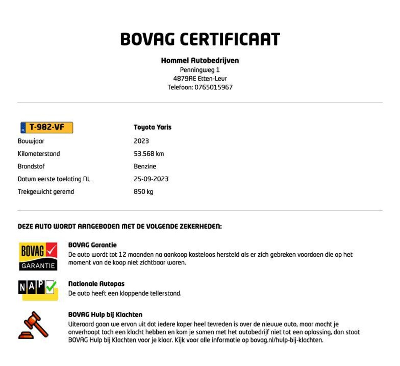 | APK | Bij aflevering |
