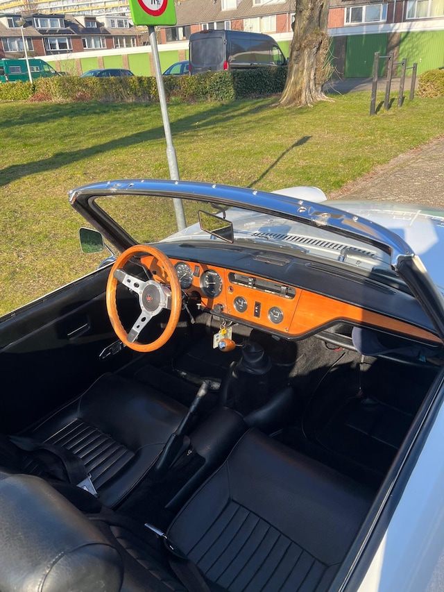 Deze prachtige spitfire stamt af van de tijd dat autorijden nog echt genieten was, alweer uit 1973 maar wat nog steeds de hoofdjes doet omdraaien wanneer je langsrijd. Ondanks dat deze spitfire er voor zijn leeftijd nog prachtig uit ziet heeft hij uiteraard wel al heel wat jaartjes zijn best gedaan. Hier en daar is er optisch altijd wel iets te vinden maar doet dit technisch geen afbreuk aan de nette staat van dit voertuig.