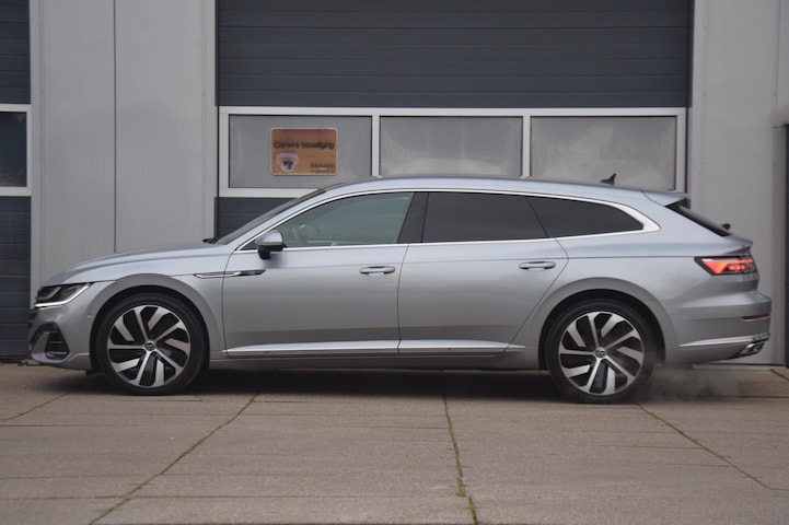 Hij blikt zelfverzekerd de wereld in, deze Volkswagen. En waarom zou hij ook niet? Want deze Arteon Shooting Brake is sterk en robuust, hij biedt veiligheid en rijcomfort in overvloed en hij blinkt bovendien uit door zijn uitstekende rijeigenschappen. Als je instapt, waan je je in een cockpit. En ook van buiten mag deze Volkswagen Arteon Shooting Brake met R-Line styling absoluut gezien worden! Een belangrijke eigenschap van iedere Volkswagen is zijn duurzaamheid. Dat ziet u ook aan deze Arteon Shooting Brake. Een viercilinder motor en een automatische transmissie zorgen voor de uitstekende prestaties van deze auto. Veel leuke extra's heeft deze auto. Om maar wat te noemen: de elektrisch bedienbare achterklep en het stijlvolle lederen interieur. Lekker hoor, die verwarmbare voorstoelen. Helemaal op koude dagen. Bovendien krijgen uw rug en die van uw bijrijder desgewenst extra aandacht door de massagefunctie. Een goede zithouding is wel zo prettig. Daarom is deze auto voorzien van comfortstoelen. Ook de passagiers achterin ervaren het ultieme comfort, dankzij de verwarmde achterbank. Verblinding van tegenliggers is er niet meer bij, dankzij de koplampen met matrix LED-verlichting. En toch de kwaliteit van daglicht in het donker! Ook 18 inch lichtmetalen velgen, warmtewerend glas, in delen neerklapbare achterbank, LED-achterlichten, verstelbare lendensteunen en verwarmde ruitensproeiers horen tot de voorzieningen op deze auto.