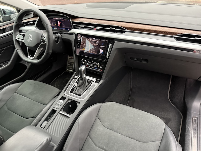 Het mooie van een Volkswagen is dat hij altijd bijzonder is, door zijn techniek, zijn rijkwaliteiten en zijn comfort. Maar tegelijk voelt hij ook heel vertrouwd. In een Volkswagen voelt u zich meteen thuis. Ook in deze Arteon Shooting Brake. Het zijn de degelijkheid van de constructie en de doordachtheid van het ontwerp die ervoor zorgen dat een Volkswagen jarenlang begeerlijk blijft. Dat is duidelijk te zien aan deze Arteon Shooting Brake, waarvan de onderhoudshistorie bekend is. Met de pittige benzinemotor en de automatische transmissie is autorijden een waar genoegen. Van een cabrio heeft u alleen 's zomers plezier. Maar het elektrisch bediende glazen panorama dak van deze auto betekent het hele jaar genieten. Net zoals u elke dag het gemak ervaart van de elektrisch bedienbare achterklep. De massagefunctie van de verwarmbare voorstoelen is een heerlijke extra optie, waarmee u uw rug en die van de bijrijder een groot plezier doet. De sportstoelen zien er niet alleen prachtig uit, maar zijn ook functioneel, zoals u kilometer na kilometer zult merken. Laat ze achterin ook maar genieten: deze Volkswagen Arteon Shooting Brake is uitgevoerd met een verwarmde achterbank. De geavanceerde matrix LED-verlichting in de koplampen levert maximaal helder zicht en past zich subtiel aan zodra er een tegenligger komt. Zonder lichtkwaliteitsverlies! Tot de uitrusting van deze Volkswagen behoren ook 18 inch lichtmetalen velgen, halflederen bekleding, adaptief dempingsysteem, warmtewerend glas, in delen neerklapbare achterbank en LED-achterlichten.