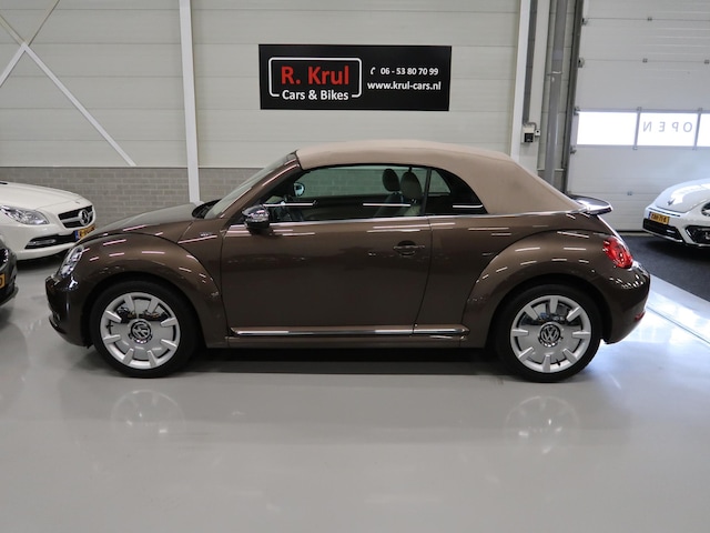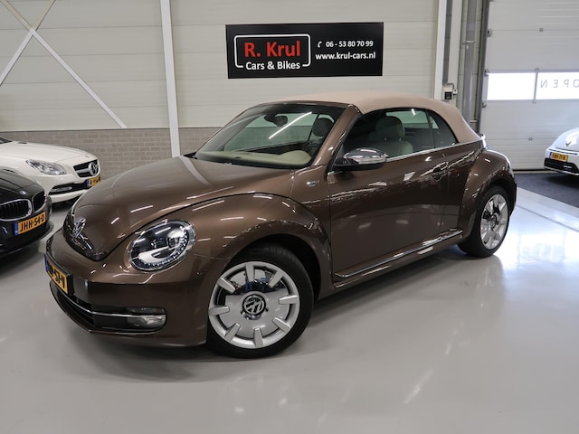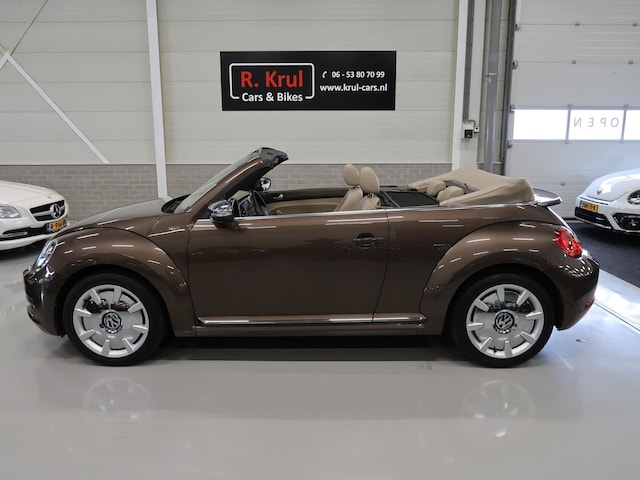 Zeldzame kans: Vw Beetle cabrio 1.2 TSI 70's van 1e eigenaar en volledig dealer onderhouden. Deze prachtige Beetle is uitgevoerd in Toffeebruin metallic met beige leer, een beige dashboard en een beige cabrioletkap, volledig elektrisch bedienbaar. Lage kilometerstand van 75.731 km en alle boekjes zijn aanwezig. Wordt geleverd met een nieuwe apk keuring. Stoelverwarming, 18 inch Disc sportvelgen, parkeersensoren voor en achter, chroompakket, xenon verlichting, multifunctioneel stuurwiel, mistlampen voor en een windscherm en afdekhoes voor de cabrioletkap. De distributieketting is al vervangen. Er zijn 2 rubber voormatten aanwezig voor in de herfst/winter en in de kofferbak ligt een beschermmat voor de bekleding. Kijk voor alle 88 foto's op onze website.