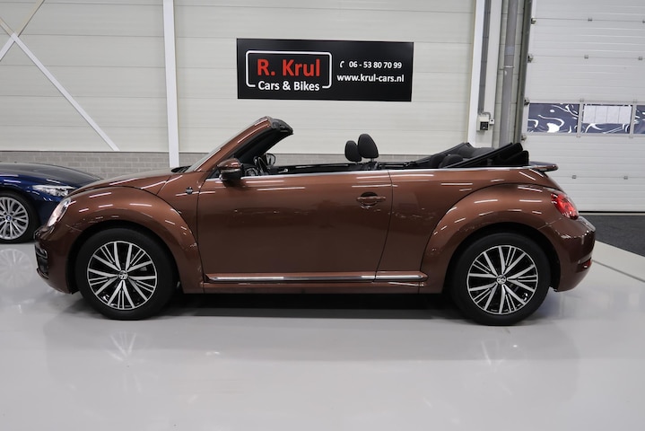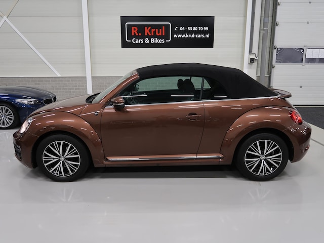 Van 1e eigenares, Vw dealer onderhouden, in zeer nette staat. Vw Beetle cabrio Sound in de kleur Dark Bronze metallic. Deze Beetle is o.a. uitgevoerd met Airco-ecc (electronic climate control, links/rechts digitaal instelbaar), volledig elektrische kap, stoelverwarming, Discover Media navigatie, parkeersensoren voor en achter, bluetooth voor telefoon en muziek, multifunctioneel stuurwiel, cruise control, windscherm, 17 inch sportvelgen, mistlampen voor, boordcomputer, chroompakket en groen getint warmtewerend glas. Tegen geringe meerprijs hebben we een set winterbanden op stalen velgen beschikbaar. Kijk voor alle 72 foto's op onze website. Altijd meer dan 25 cabrio's op voorraad waaronder 10 Vw Beetle's.