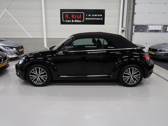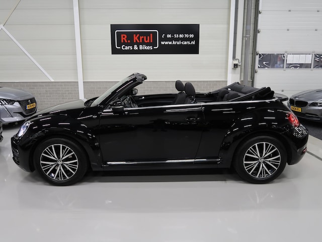 Zeer mooie Vw Beetle cabrio Sound van de laatste facelift. Deze auto aantoonbaar van 2e eigenares. De Beetle is in nieuwstaat en heeft de sportieve en geliefde kleur Brilliantzwart (ebbenhoutzwart). Bekijk alle 71 foto's op onze website. Natuurlijk zijn de onderhoudsboekjes, onderhoudslijsten, facturen en beide sleutels aanwezig. Bij de auto is een origineel windscherm en een afdekhoes (tonneaucover) voor de cabrioletkap, zelden gebruikt en nog zo goed als nieuw in het plastic. Enkele belangrijke opties zijn: multifunctioneel stuurwiel, App connect, cruise control, groot kleuren navigatie Discover media, parkeersensoren voor en achter, airco-ecc, stoelverwarming, bluetooth telefoonvoorbereiding, aux en usb aansluiting, elektrische kap en 17 inch sportvelgen. Bekijk alle 83 foto's op onze website. Doorlopend meer dan 25 cabrio's op voorraad waaronder veel Vw Beetles.