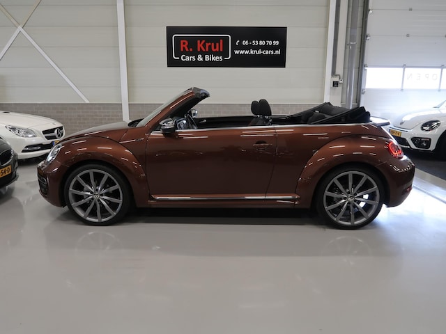 Kijk voor alle 84 foto's op onze website. Zeer nette Vw Beetle cabrio met 150pk sterke 1.4 benzinemotor, automaat DSG met 7 versnellingen, half leer, xenon, LED achterlichten, airco-ecc, stoelverwarming, 20 inch sportvelgen af fabriek, Fender geluidssysteem, Discover media navigatie, bluetooth, achteruitrijcamera, cruise control, Dark Bronze metallic, parkeersensoren voor en achter, blind spot, app connect/android auto, volledige onderhoudshistorie is aanwezig en voor ondernemers is de btw verrekenbaar. Windscherm en afdekhoes voor de cabrioletkap zijn aanwezig. De prijs is inclusief btw. Wordt geleverd met een nieuwe apk keuring. We hebben doorlopend meer dan 10 Vw Beetle cabrio's op voorraad. Nieuwsgierig geworden? klik dan door naar onze website.