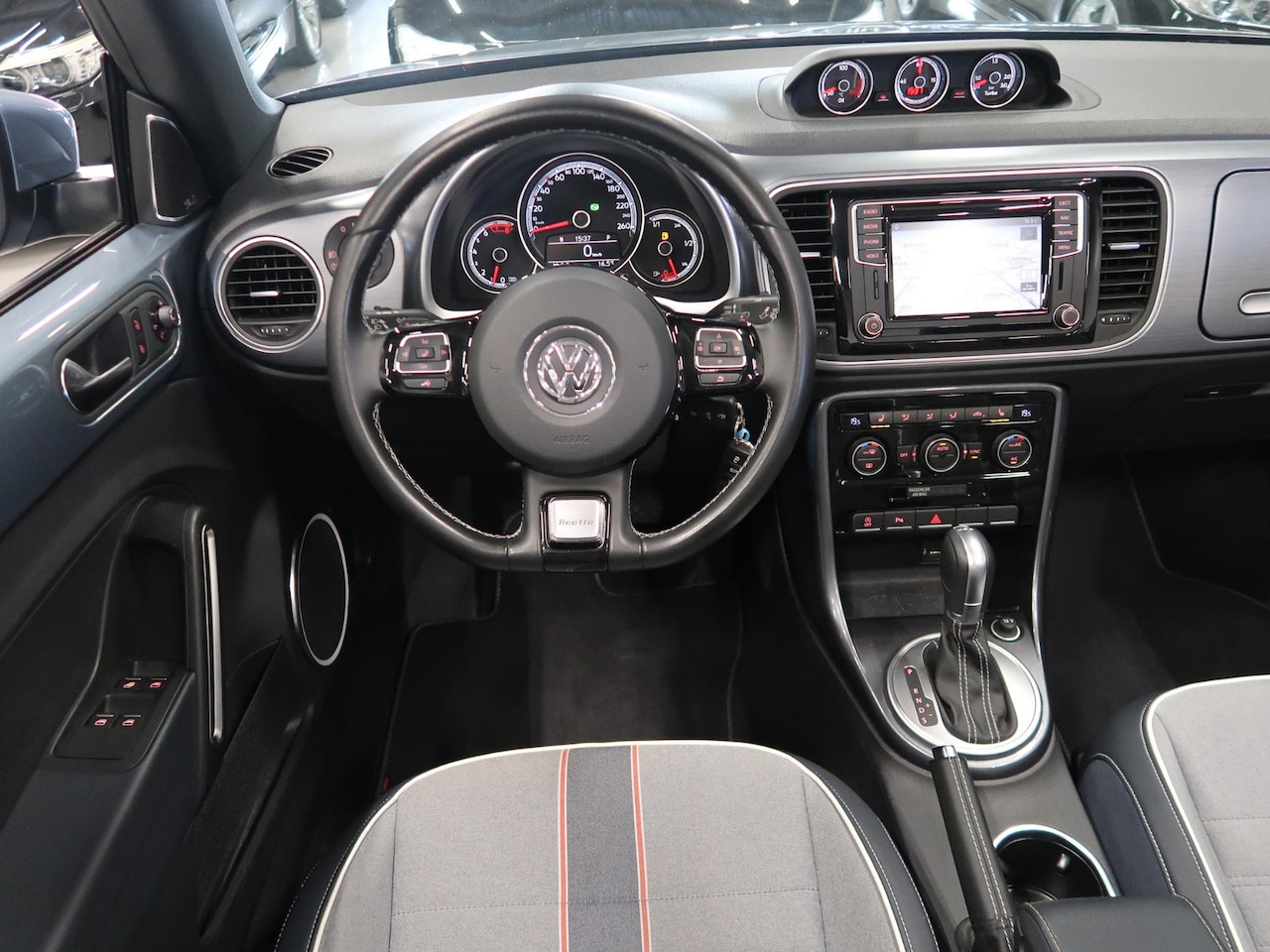Volkswagen Beetle Cabriolet - 1.4 TSI Denim Sportstoelen Xenon Automaat Fender App connect LED PDC Navigatie 18 inch Win