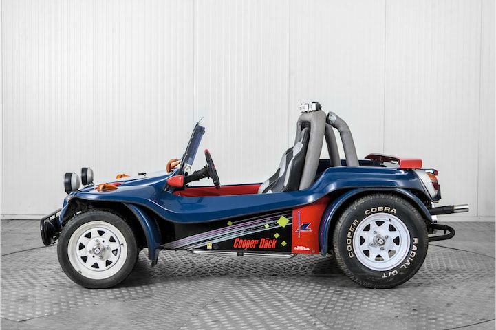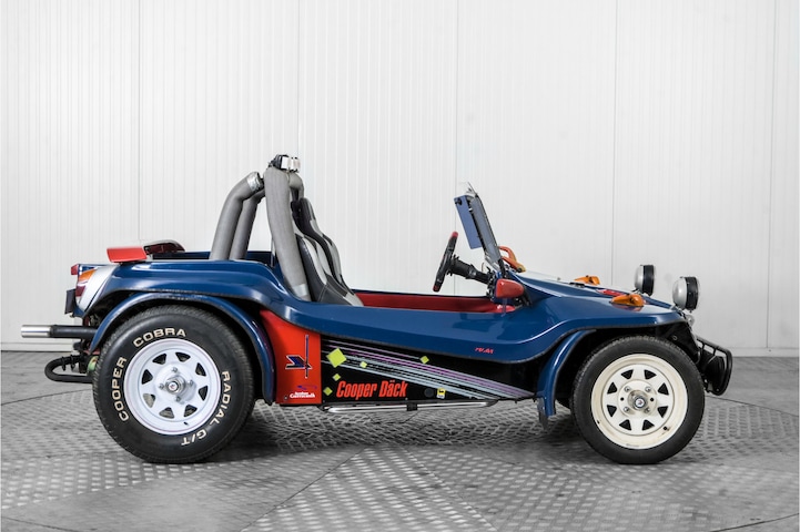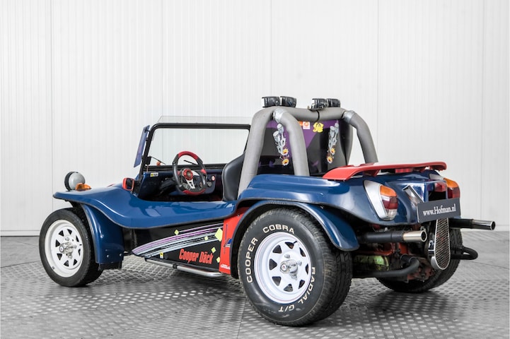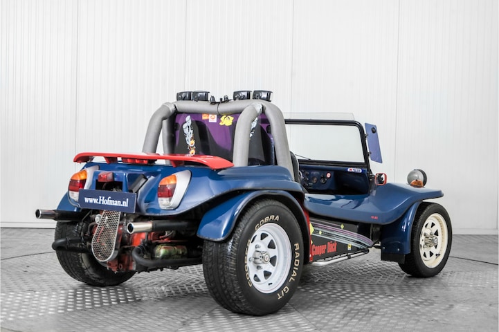 Deze rood blauwe Kever-buggy met witte velgen is een pure fun-auto, gebouwd op het betrouwbare onderstel van de klassieke Volkswagen Kever met achterwielaandrijving. Onder de lichte, open buggy-carrosserie ligt de beroemde luchtgekoelde viercilinder boxermotor achterin, simpel van opzet, goed bereikbaar en geroemd om zijn degelijkheid .Het lage gewicht in combinatie met deze onverwoestbare Kever-techniek zorgt voor een levendig rijgedrag en een directe, ouderwets mechanische rijbeleving die perfect past bij het speelse uiterlijk van deze buggy. Deze buggy is voorzien van sportieve kuipstoelen voor een stevige zit, tijdens leuke avonturen. Op dit moment niet lopend en rijdend, dus met werk.